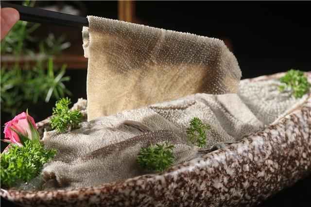 口感咸香有嚼劲,解决得很洁净也没什么异味,放入火锅锅底中烫煮,咸香中透着麻辣,耐人寻味。