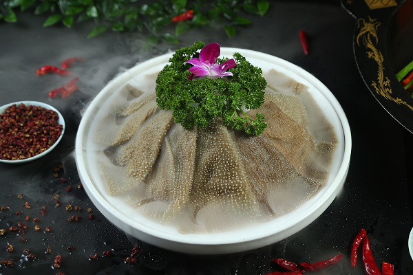 吃火锅当然必点的是毛肚!标配!看见毛肚上的根根小刺尖尖直立着,就说明很新鲜!毛肚只需要在滚烫的地方烫上个10秒左右刚刚好,脆脆的口感在往油碟里一滚,简直是鲜辣无比!